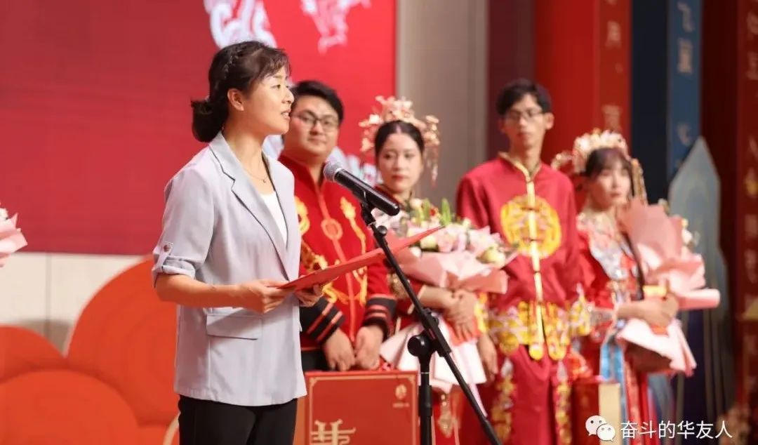 會場上集團副總裁、華友衢州產(chǎn)業(yè)園黨委書記方圓為新人做了證婚儀式,祝福新人和美一生;集團總裁助理、新能源產(chǎn)業(yè)集團副總裁李天成為新人送上了鮮花,祝福新人百年好合;集團副總裁、新材料產(chǎn)業(yè)集團總裁徐偉代表公司為新人送上祝福紅包,祝福新人琴瑟和鳴;華友衢州產(chǎn)業(yè)園工會主席陸熙明代表工會為新人送上了賀禮,祝福新人長長久久;共青團衢州市委書記童舟致賀詞,祝愿新人恩愛一生共白頭。