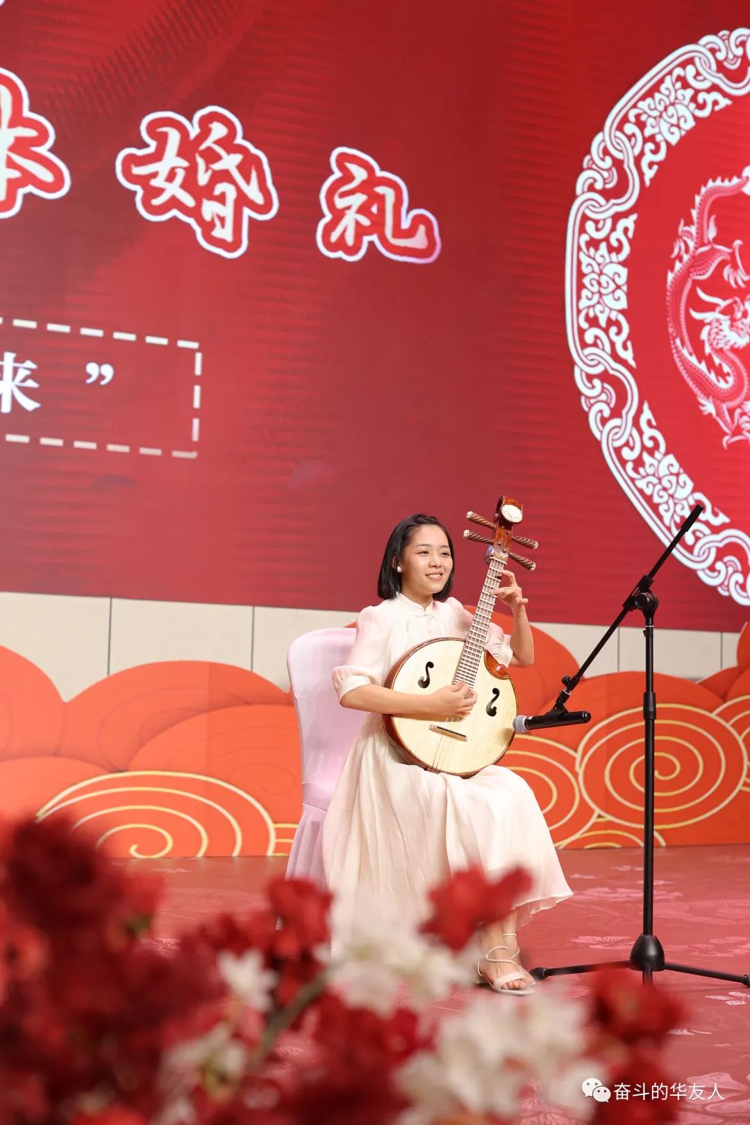 “從此刻起,你們正式成為結(jié)發(fā)夫妻,禮成!”儀式結(jié)束也把氛圍推到了沸點。大家紛紛摩拳擦掌想上臺為新人送上祝福,這邊2022屆大學生代表秦碧徽和她的男朋友姚云飛為新人獻上了一曲中阮彈唱,祝福新人幸福天長地久。那邊新娘閆寧寧一首《約定》唱出了愿得一人心、白首不相離的相約。臺上還進行了投壺、花開富貴等游戲。