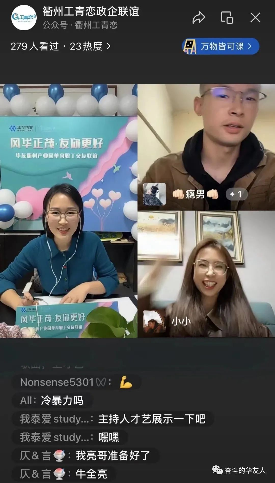 10月29日19:00 《“緣”來是你》線上愛情直播間開啟后,便有200余名單身男女報(bào)名涌入。直播間內(nèi),主持人以現(xiàn)場互動(dòng)、資料展示、網(wǎng)絡(luò)連線等方式,引導(dǎo)單身職工們在線上直播間充分展示自我,開辟了一條全新的交友渠道。同時(shí),通過直播聯(lián)動(dòng)、表心意、加好友、群聊互動(dòng)、心動(dòng)緣分墻等線上溝通模式,取得了更多同齡單身人士的關(guān)注,截止直播結(jié)束,累計(jì)參與人數(shù)達(dá)490余人,有利解決了職工因時(shí)間、交通、地域等限制,阻礙交友的問題。