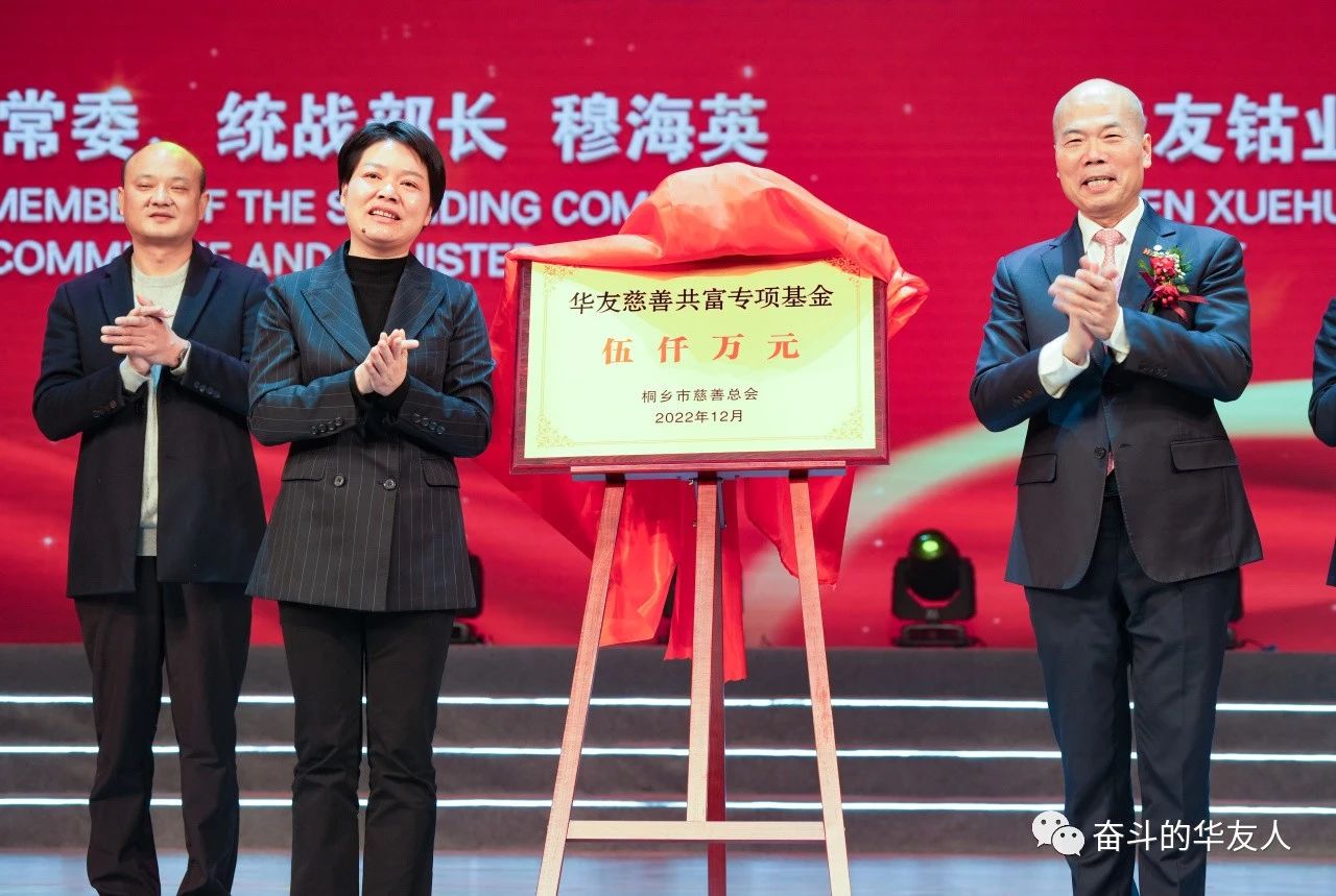 2022年12月19日,在華友鈷業(yè)成立二十周年慶祝大會上,華友捐贈5000萬元成立慈善共富基金,主要用于鄉(xiāng)村振興、低收入家庭大病救助、教育事業(yè)發(fā)展等項(xiàng)目,創(chuàng)下了桐鄉(xiāng)市一次性慈善捐贈最高記錄。