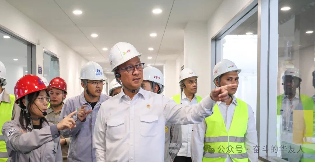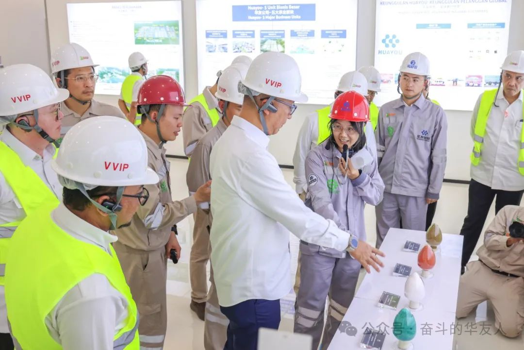 His Excellency Agus Gumiwang toured the high-pressure acid leaching workshop, product workshop of the Huafei project, as well as the exhibition hall, quality testing center, main control center, and production workshop of the China Huaneng project. He listened to introductions about the general situation of the projects, including process technology, production scale, capacity output, and ESG construction. He congratulated Huayou on the successful implementation and production start-up of a series of projects in Indonesia.