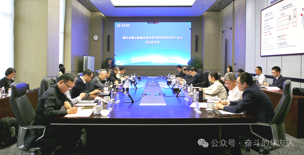 Recently, the kick-off meeting for the "Development and Industrialization of High-Safety, High-Energy Density Solid-State Battery Cathode Materials" project was held in Quzhou. This project, led by Huayou New Energy Industry Group and jointly implemented with upstream and downstream enterprises and research institutions such as Beijing Weilan New Energy Technology Co., Ltd., Zhejiang University, and Ningbo Institute of Materials Technology and Engineering, Chinese Academy of Sciences, aims to tackle key technologies for high-density, long-life, and high-rate solid-state battery cathode materials.