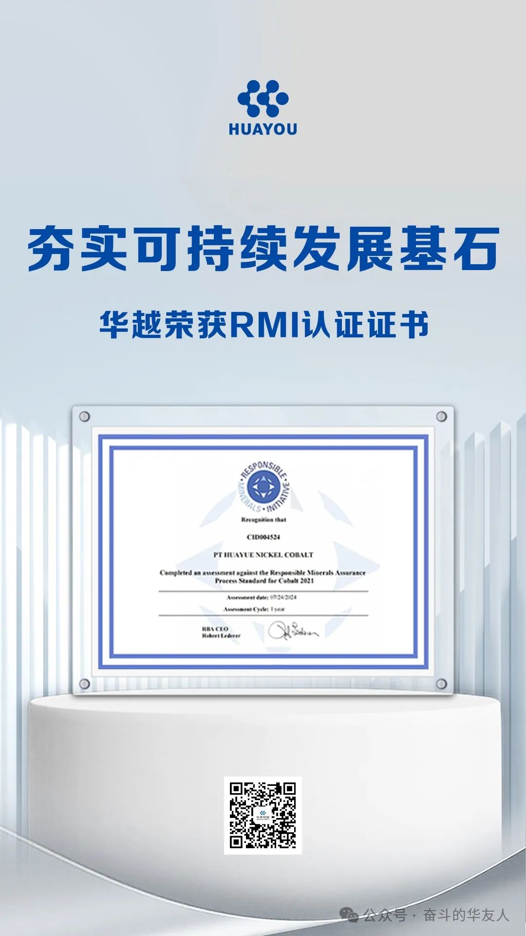 Recently, Huayue Nickel-Cobalt (Indonesia) Co., Ltd. has been awarded the Responsible Minerals Initiative (RMI) certification, marking an important milestone as the company’s efforts in responsible mineral supply chain management and ESG governance have been recognized by an international authority. This achievement enhances the company's industry standing and propels the construction of a green, sustainable mineral supply chain.