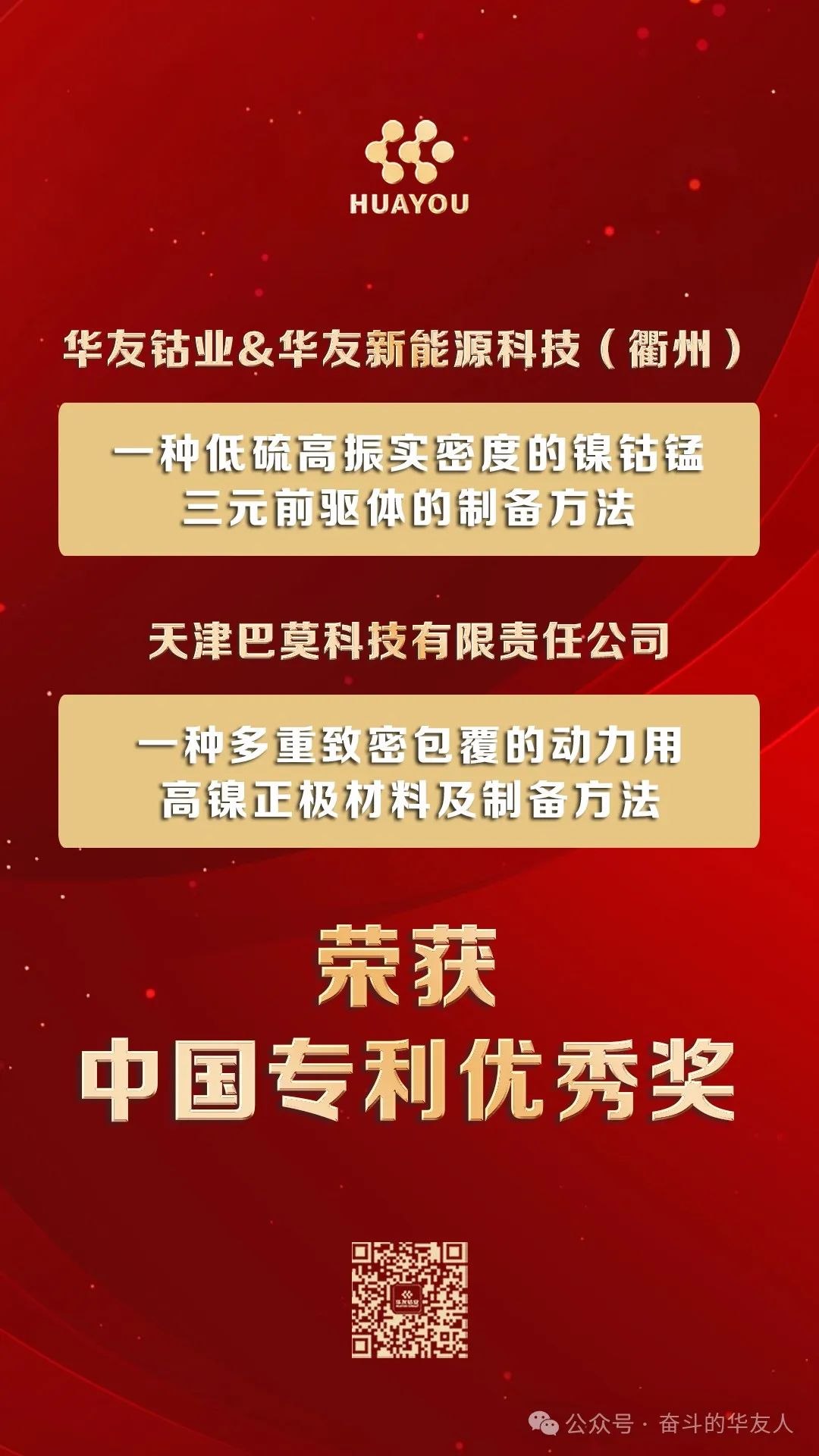 National Honors +2! Huayou Receives the 25th China Patent Award