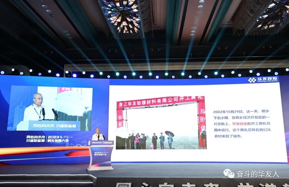 “一周前,華友首次上榜中國企業(yè)500強,位列363位,實現(xiàn)了從中國民營企業(yè)500強向中國企業(yè)500強的跨越?!弊鳛橥辽灵L的桐鄉(xiāng)企業(yè)家代表,集團董事長陳雪華以一張榜單的發(fā)布為切入點,與海內(nèi)外桐鄉(xiāng)鄉(xiāng)賢、企業(yè)家代表、客商代表共同分享了華友鈷業(yè)20多年來的創(chuàng)業(yè)史、成長史。