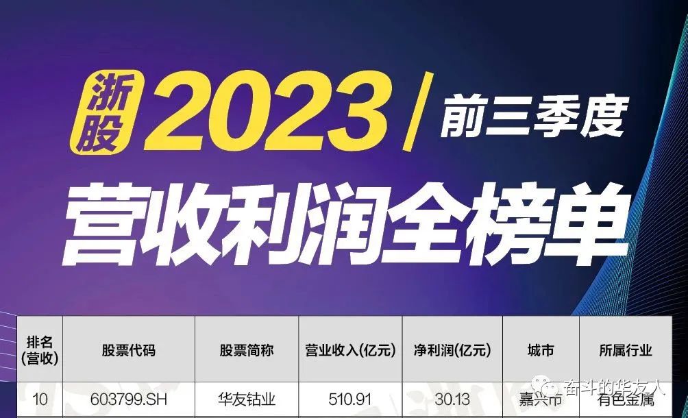 11月1日,浙商雜志公布浙江A股上市公司2023年前三季度營(yíng)收、利潤(rùn)全榜單,共有691家公司上榜。華友鈷業(yè)以510.91億元的營(yíng)收、30.13億元的凈利潤(rùn)雙雙位居第十,交上了一份高水平開放引領(lǐng)高質(zhì)量發(fā)展的高分答卷!
