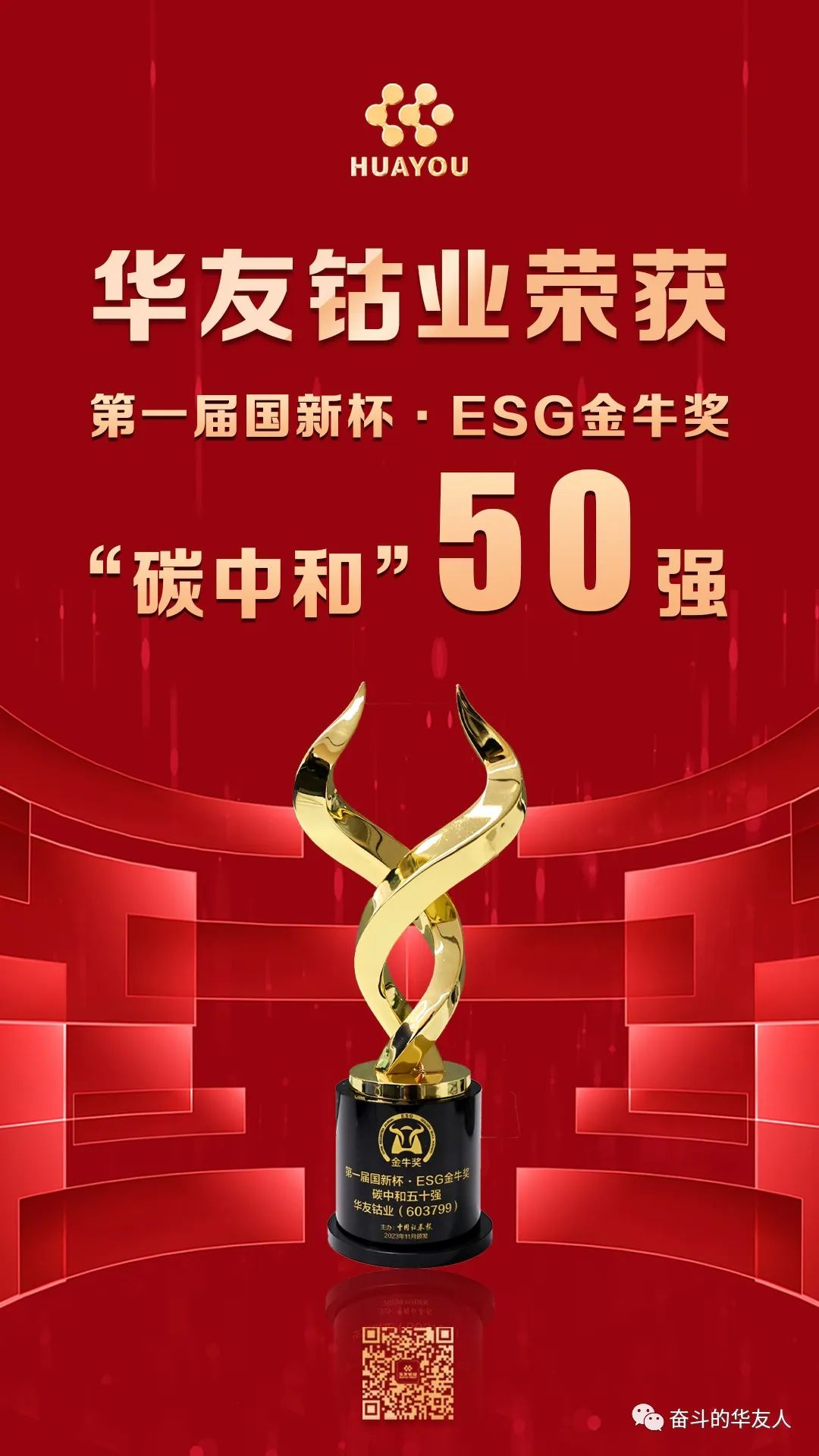 11月24日,由中國證券報、中國國新控股有限責(zé)任公司、南通市人民政府聯(lián)合主辦的“新生態(tài)新價值新成長——2023金牛企業(yè)可持續(xù)發(fā)展論壇暨第一屆國新杯·ESG金牛獎頒獎典禮”在江蘇南通舉行。華友鈷業(yè)榮獲第一屆國新杯·ESG金牛獎“碳中和”五十強(qiáng)。