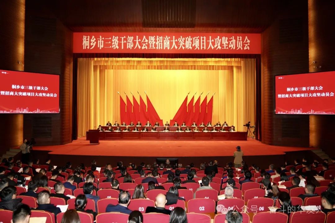 人勤春早功不負(fù),奮斗實(shí)干啟新程。今天(2月17日),桐鄉(xiāng)市召開三級(jí)干部大會(huì)暨招商大突破項(xiàng)目大攻堅(jiān)動(dòng)員會(huì),總結(jié)成績(jī)、表彰先進(jìn)、樹立典型、提神鼓勁,動(dòng)員全市上下擼起袖子加油干,重整行裝再出發(fā),奮力書寫中國(guó)式現(xiàn)代化的桐鄉(xiāng)篇章,加快建設(shè)數(shù)字文明共富美好新桐鄉(xiāng)。中共桐鄉(xiāng)市委書記于會(huì)游,桐鄉(xiāng)市委副書記、市長(zhǎng)王堅(jiān)等四套班子領(lǐng)導(dǎo)出席大會(huì)。集團(tuán)董事長(zhǎng)陳雪華參加會(huì)議并于主席臺(tái)就座。