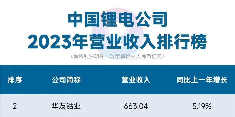 近期,24潮產業(yè)研究院(TTIR)根據(jù)國內111家鋰電上市/IPO公司最新年報(2023年財報)中營收、預收款、歸母凈利潤、對外投資、經營與籌資現(xiàn)金流等不同維度數(shù)據(jù)發(fā)布了十大排行榜。在2023年中國鋰電加速產業(yè)洗牌與博弈進程中,華友鈷業(yè)迎難而上、破難而進,以663.04億的營收和33.51億的凈利潤,分別位列相應榜單的第二和第八位,其它維度數(shù)據(jù)亦位居前列。